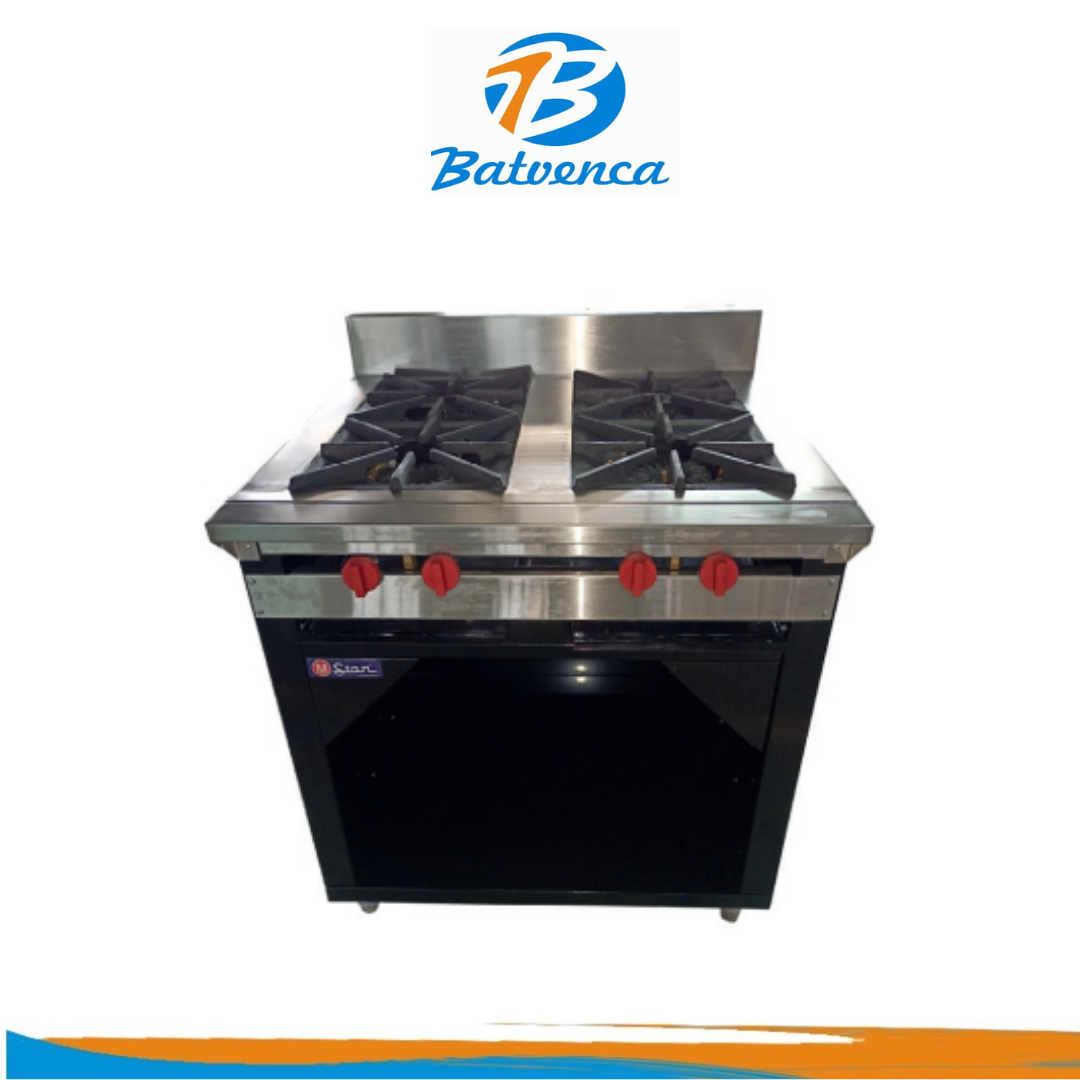 Cocina Industrial 4 hornillas y gabinete pintada MStar / Mod. CIH44002G