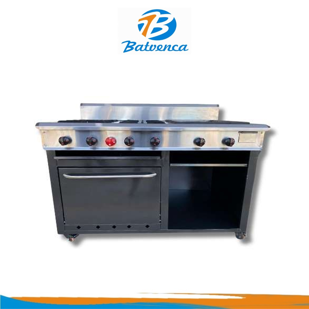 Cocina Industrial a Gas 6 hornillas + horno en Hierro MA / Mod.