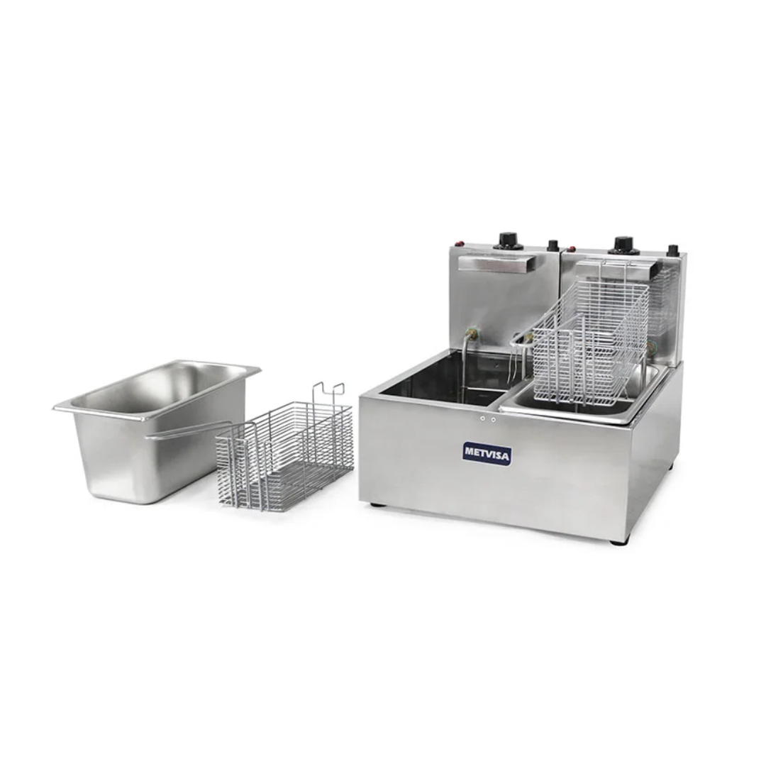 Freidora Eléctrica de mesa 3+3 Lts (2 cestas) en acero inoxidable Metvisa